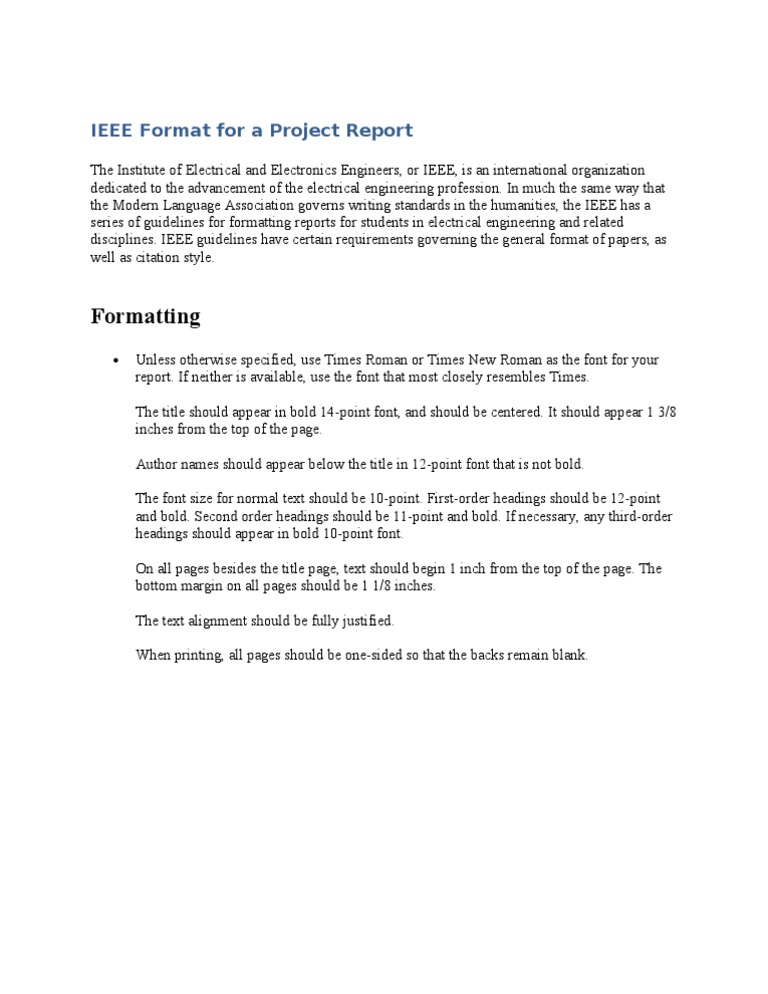According to ieee format, when you cite within the text you need to refer to the position of the source within your bibliography or reference list, rather than the author's name. An abstract should follow the title page of the document and appear in the text in boldface type. Many organizations start with a template commonly used in the industry, and tailor the template to the needs of the organization. As a result of the narrative review, we present a framework of 22 conceptually distinct determinants of is project performance classified into six categories. The project report page must be in a4 size and the binding of the project report must be hardbound not spiral binding including a printed cover page on it in a particular format.